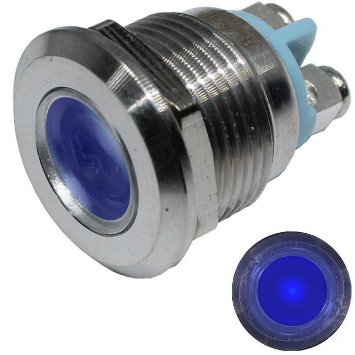 Edelstahl Kontrollleuchte V2A Signalleuchte Ø22mm LED Blau IP67 Schraubanschluss Ø25x28mm -25...+70°C